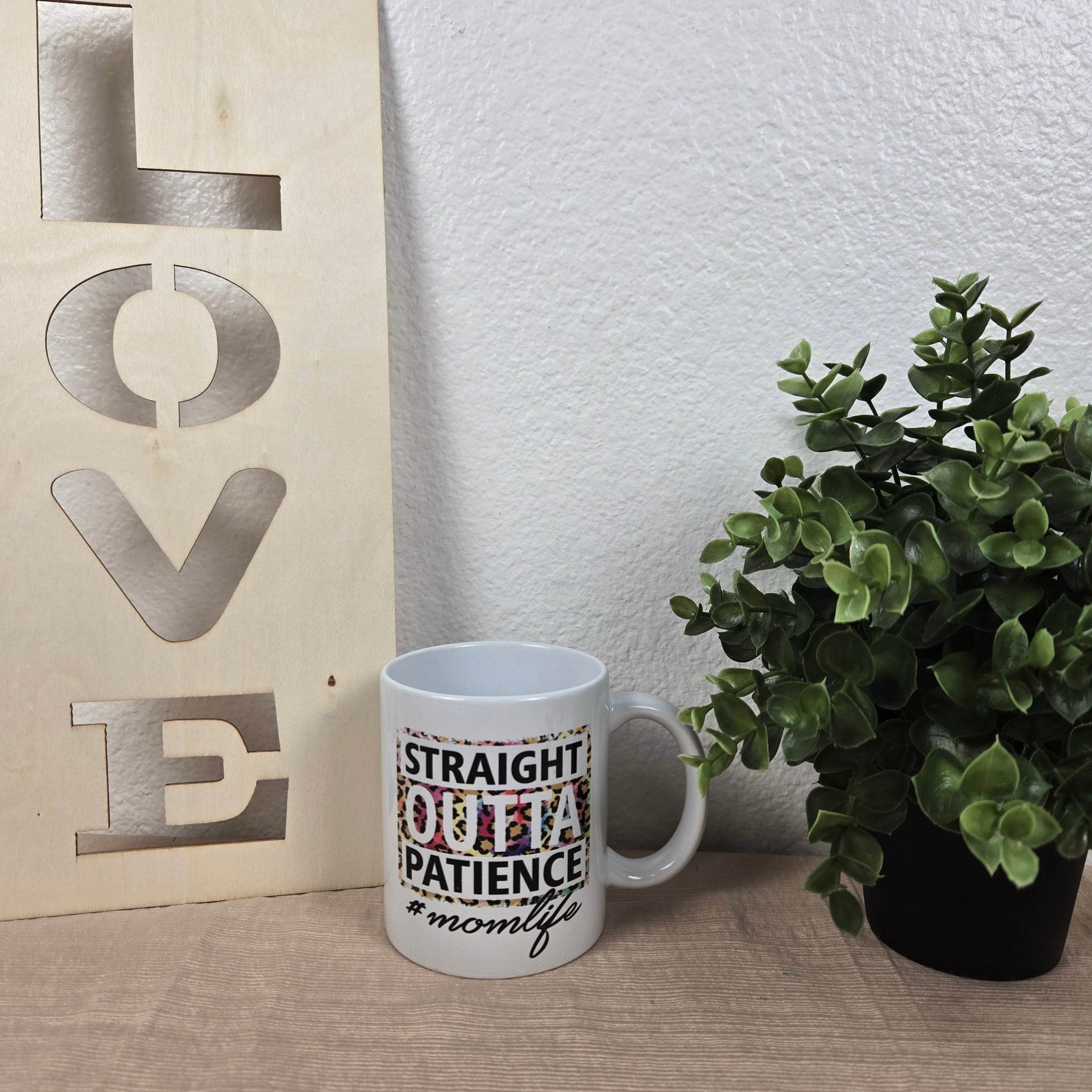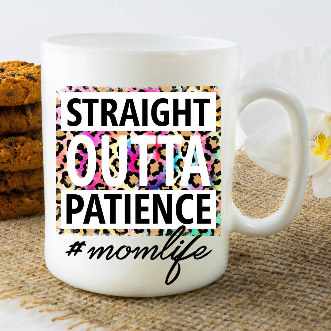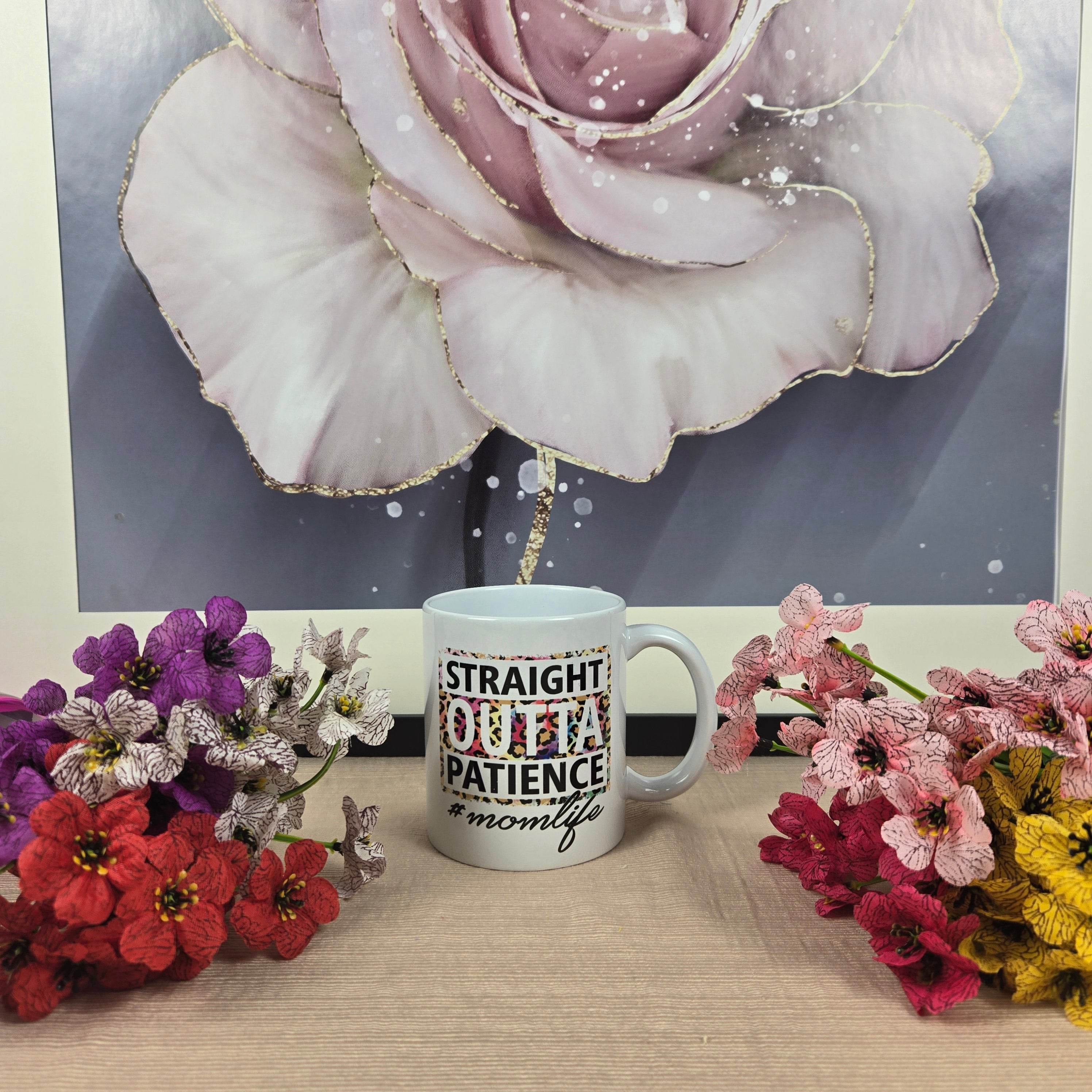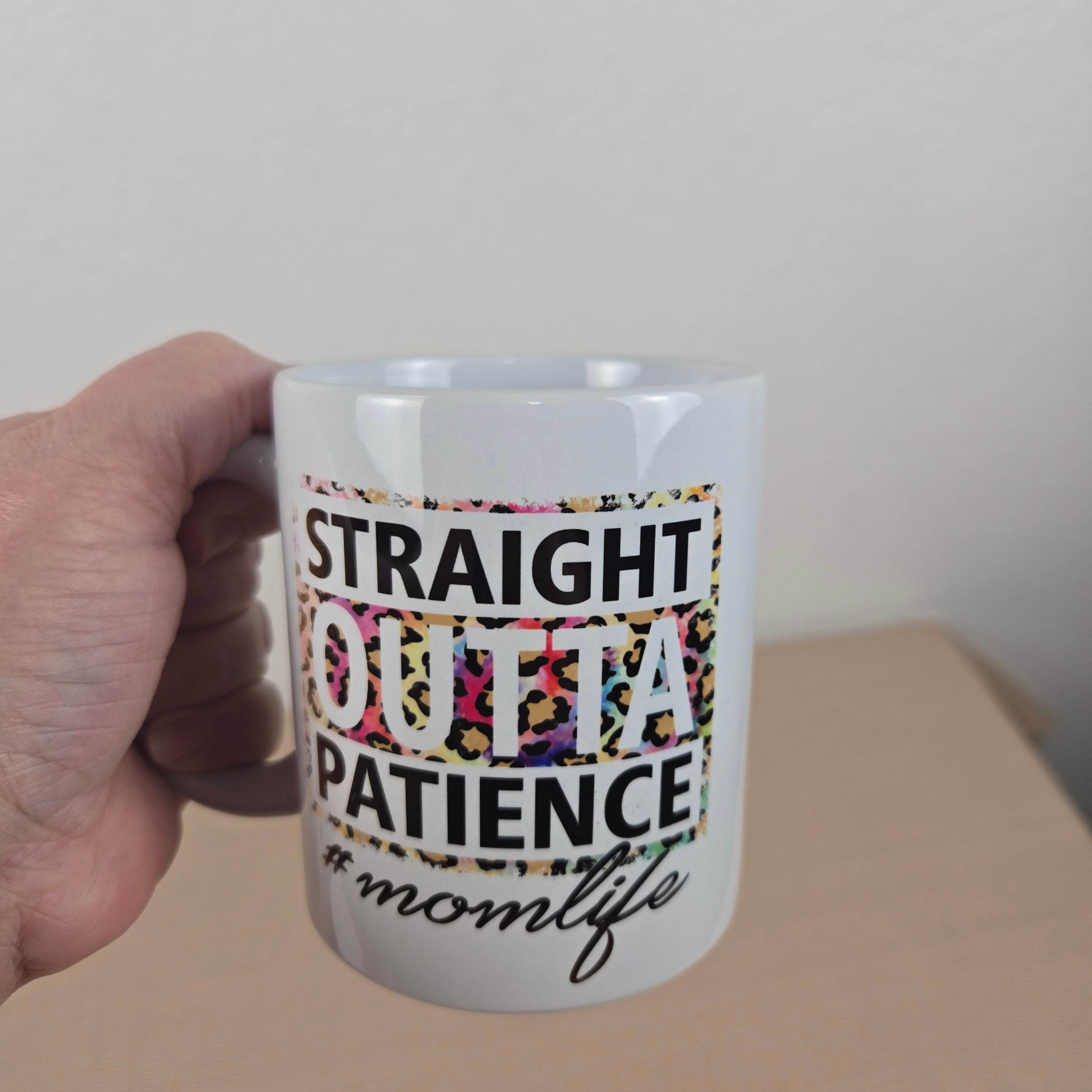 Get your caffeine fix with this hilarious ceramic mug featuring a quirky Straight Outta Patience #Mom Life design. No need to sacrifice your patience for a good laugh!